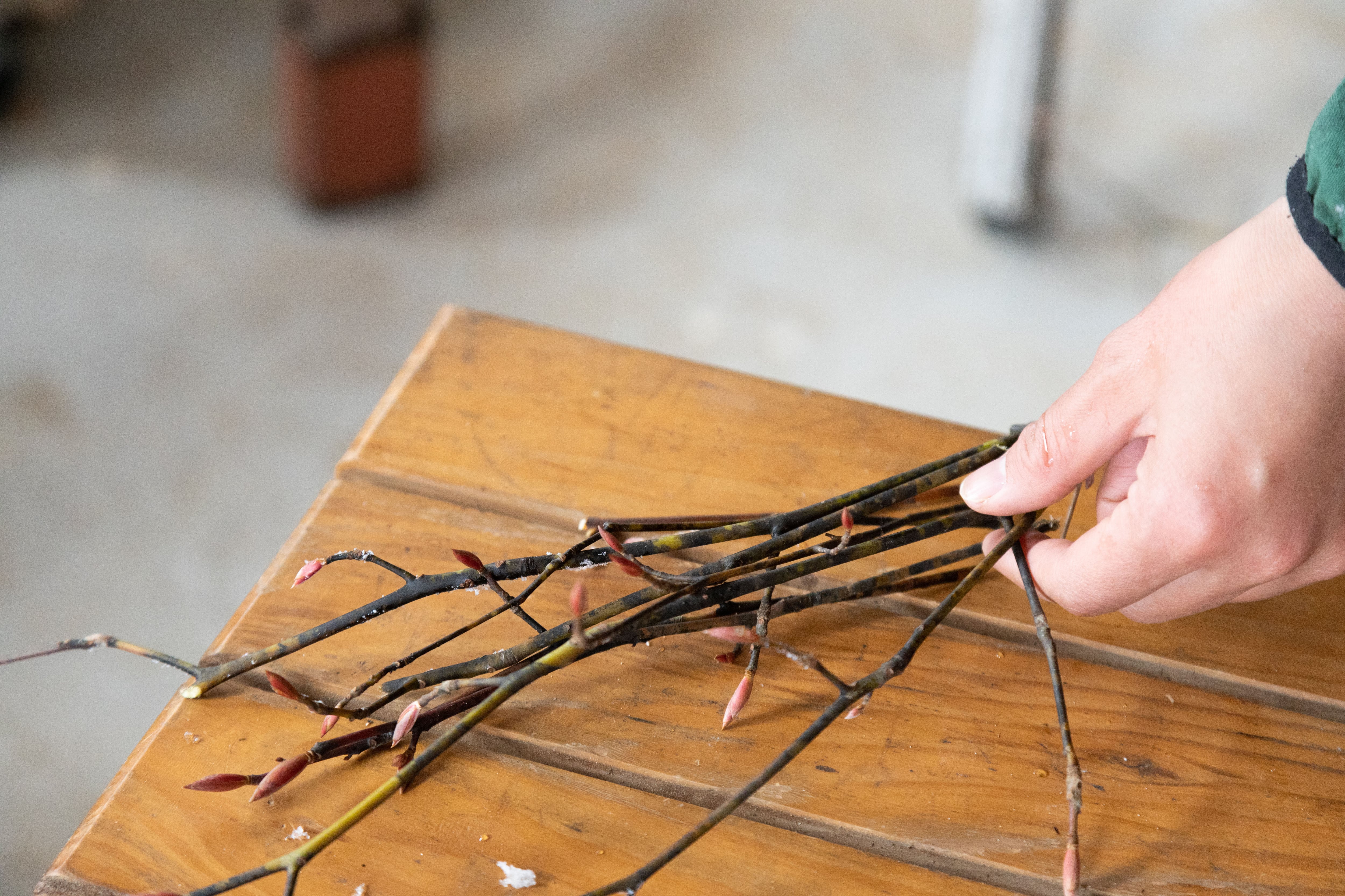 高知で木こりをナリワイとする夫が、作業中にやむをえず伐ることになるクロモジを活用できないかと、チップ状に粉砕し、天日干しで乾燥させました。